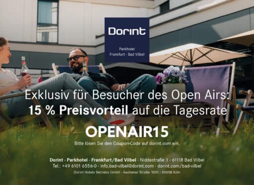 Ja, wir können euch sehr das Dorint Hotel in Bad Vilbel ans Herz legen. Und das beste – Gäste des Friedberg Open Airs erhalten dort 15% Rabatt auf die Zimmerrate.